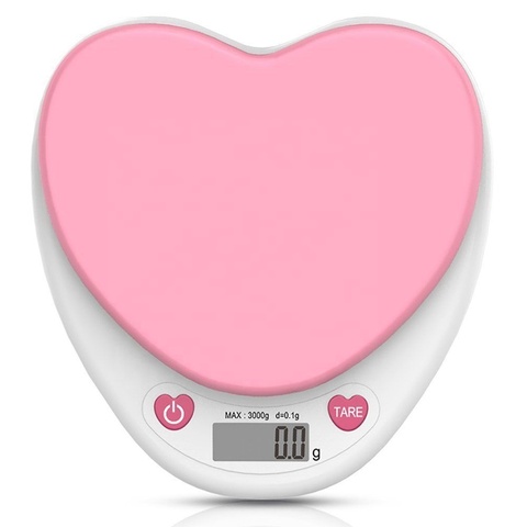 Báscula de cocina Digital bonita con diseño rosa de 3KG y 0,1g, balanza de peso de 3000G para cocina, herramienta de cocina, báscula de plástico en forma de corazón